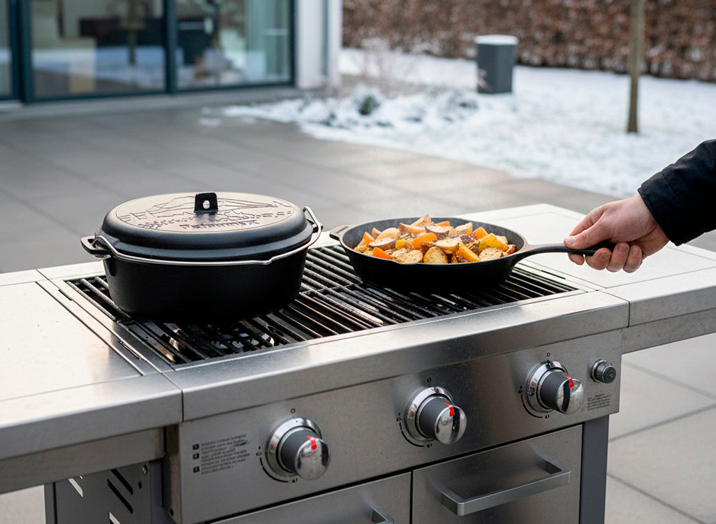 The Essential Line Skillet Pan combines reduced weight with the full strength of cast iron: it reliably retains heat, cooks evenly and is ready to use immediately thanks to its seasoned finish. The practical side spout and handle ensure precise handling – whether for tossing, portioning or serving directly.